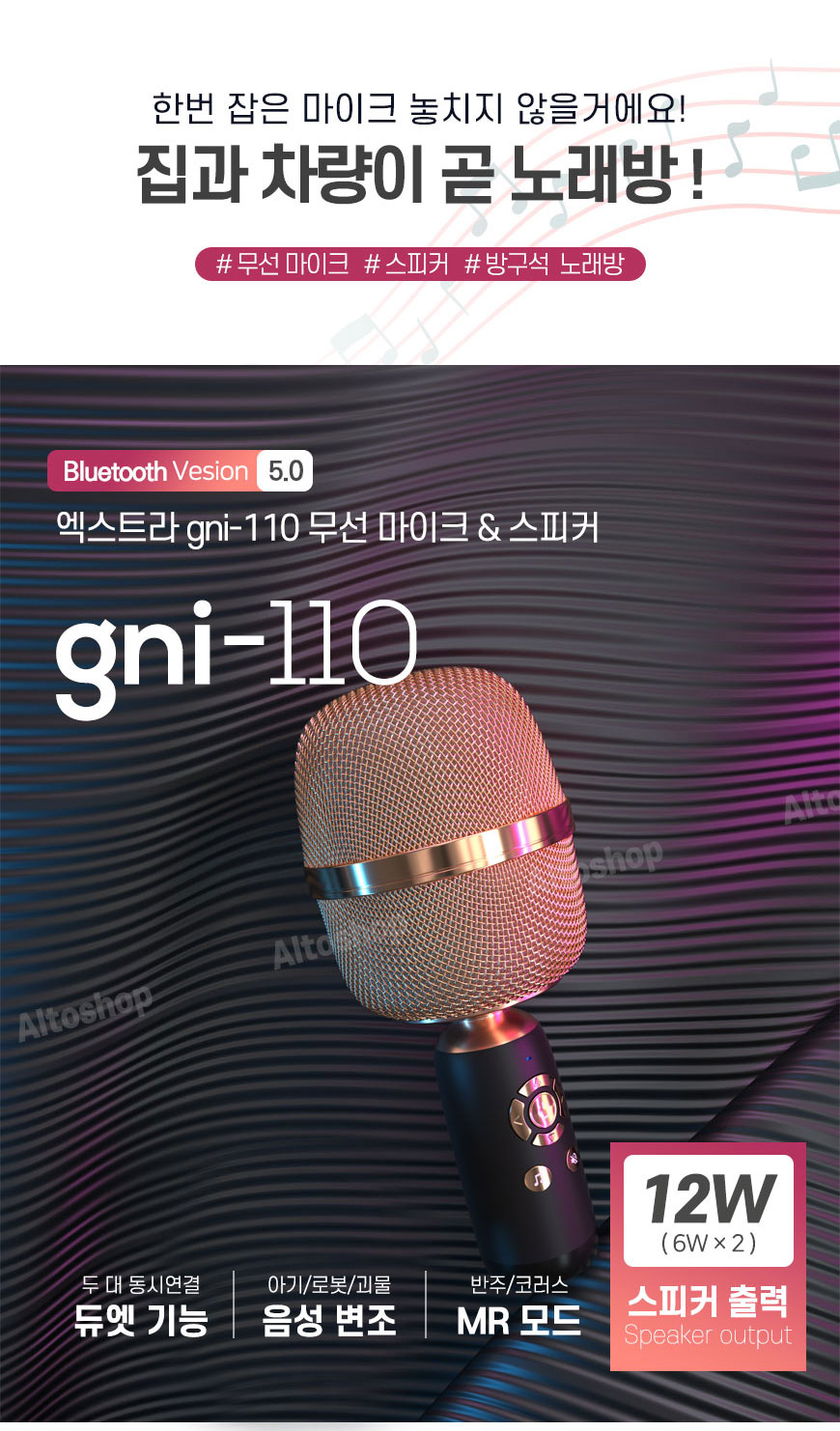 [오픈마켓] 엑스트라 gni-110 노래방 블루투스 무선 마이크&스피커 블랙