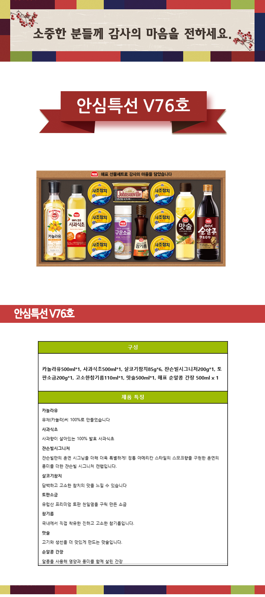 [사조해표] 사조해표 선물세트 안심특선 V76호 x 3세트