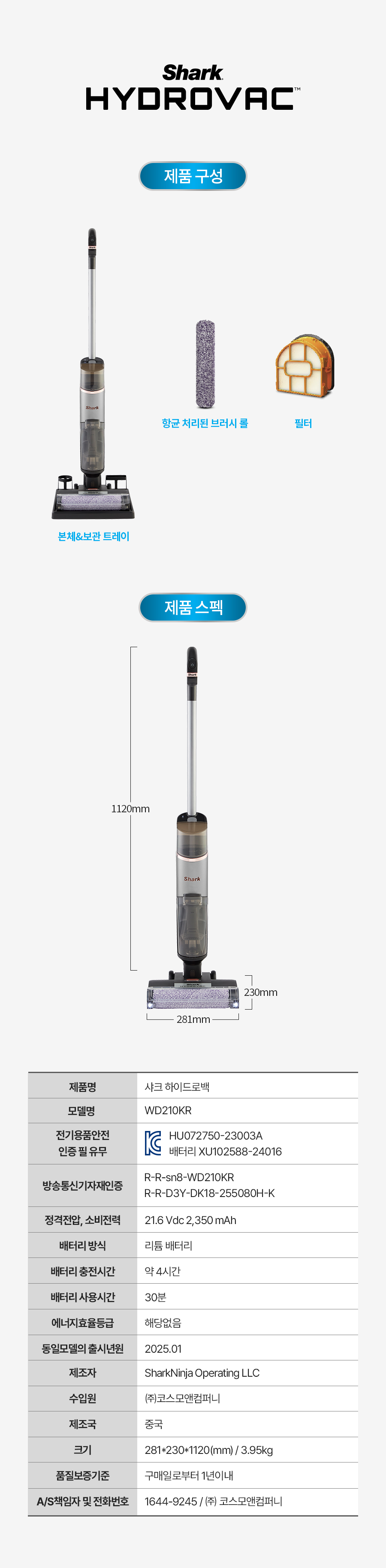 샤크 SHARK 하이드로백 물걸레 청소기 WD210KR