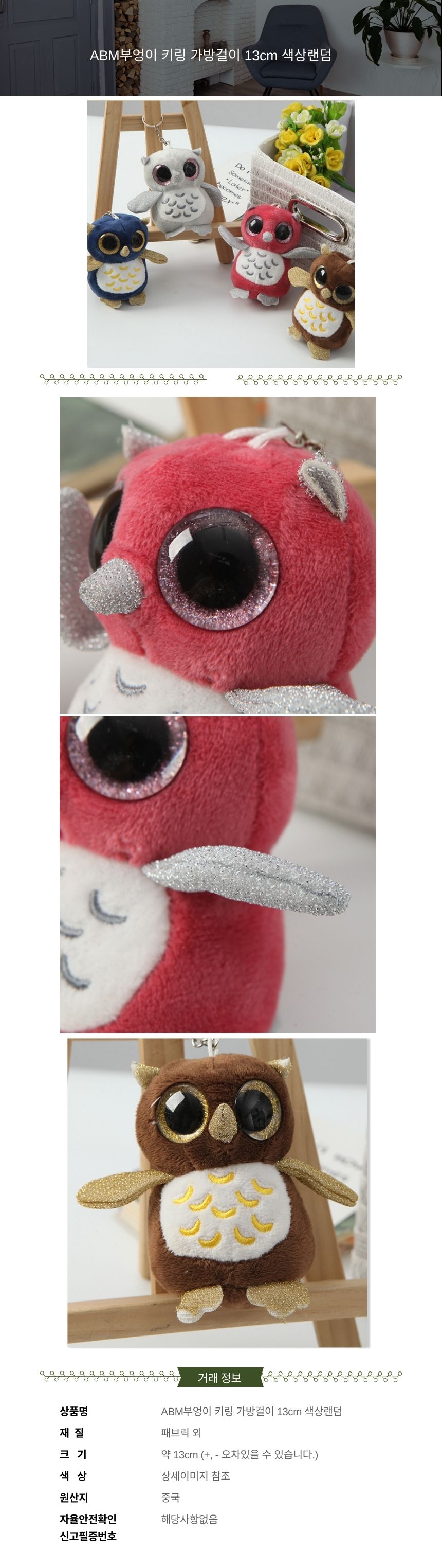 ABM부엉이 키링 가방걸이 13cm 색상랜덤